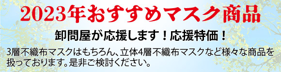 マスクを中心に取り扱っている業者向け総合卸売専門サイトです。取扱商品は3層不織布マスク、立体4層不織布マスクなどのマスク商品を中心に、他にもライター、サービス用ビニール傘・販売用ビニール傘・防災用品・アルカリ乾電池等などを取り揃えています。