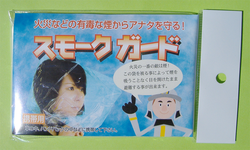 テレビでも話題の非常用品!枕元に置いて、火災などの有毒な煙からあなたを守ります。 サイズ:50×53cm |