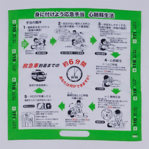 AEDの使い方が分かりやすく書かれています。 サイズ:約53×53cm 名入れ:指定位置に1C、2C×10cm以内 |