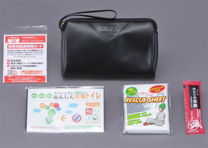 | 商品No | KH-1200 | 商品名 | おでかけ防災ポーチセット 【梱100/PP袋入】 |