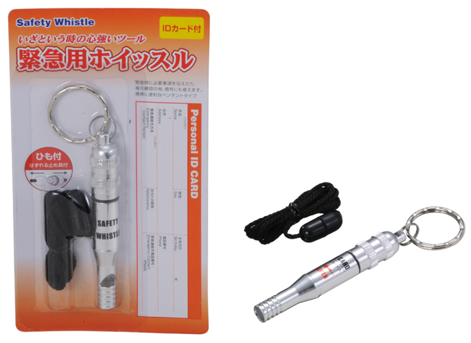 携帯に便利なペンダントタイプ。 緊急時に居場所を伝えるだけでなく、必要事項を伝えたり身元確認にも使えるIDカード付。 サイズ:φ10×76mm |
